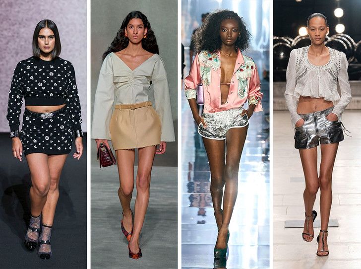 Такие бренды как Diesel и Miu Miu предлагают модницам стильные идеи с мини юбками. Короткие шорты также являются трендом сезона весна-лето 2023. Стильные модели подчеркнут ноги и визуально сделают их длиннее.