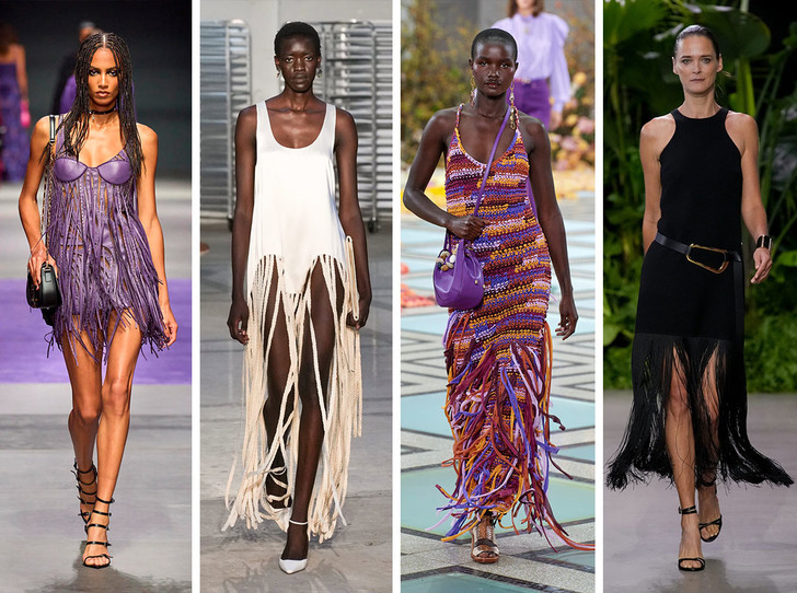 В модных коллекциях бахрома гармонично вписалась и отлично смотрится с цветной одеждой и вязаными платьями. Также стильно выглядят сумки с бахромой.