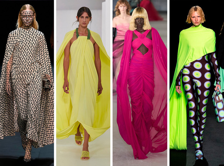 Платья с кейпом всегда смотрятся феерично, поэтому будут незаменимыми на важных мероприятиях. Данный тренд внес свое разнообразие в повседневный образ.