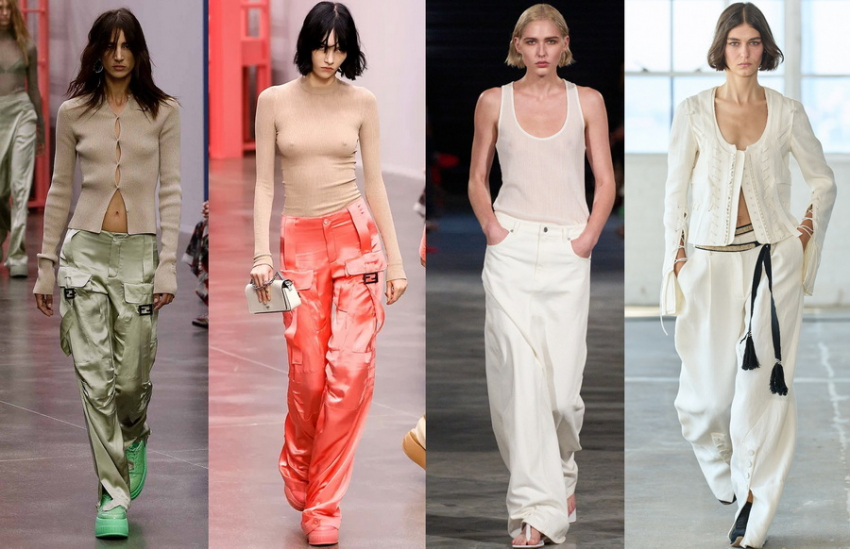 Ключевым трендом сезона весна-лето 2023 по-прежнему являются брюки-карго с большим количеством карманов. Такие бренды, как Diesel, Versace и другие, представили коллекцию, в которой были карго.