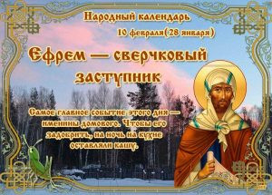 Ефремов день считается как церковным, так и народным праздником, который отмечают православные 10 февраля. Преподобный Ефрем Сирин является одним из церковных учителей 4 века, кроме того, он замечательный христианский богослов и поэт. Святой сделал огромный вклад за свою жизнь в виде толкования Писания.