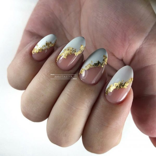 Любители минимализма также найдут что-то для себя в последних тенденциях. Один из самых интересных вариантов – маникюр с нежным золотым орнаментом. Его можно сделать на бежевом или розовом лаке.