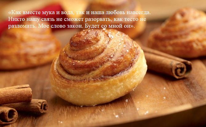 Заговоренную булку отдать любимому. Когда он ее съест, нужно произнести следующие слова.