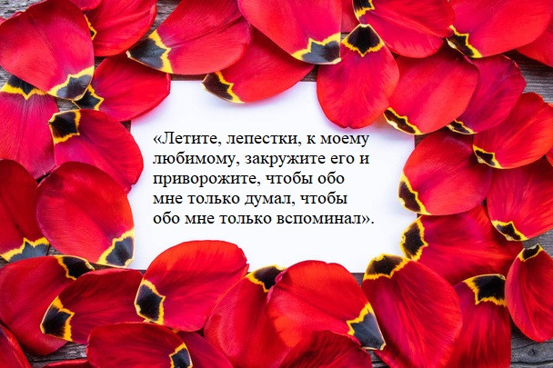 В красивую красную коробку поместите лепестки алых роз. Сверху положите ваши фото и прочитайте заговор.