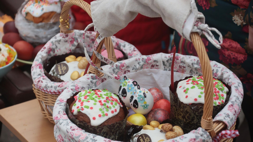 В ночь на 16 апреля в храмах проводят особые богослужения. Прихожане приходят с корзинами, в которые помещают лакомства, хлеб, воду, овощи, фрукты, крашеные яйца. Их освящают, а потом дома съедают за праздничным столом.