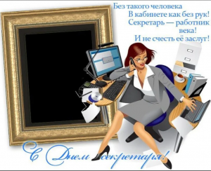 Поздравляю с Днём секретаря. Желаю всегда и легко находить место для каждой папки, для каждого документа, для каждого слова, для каждой идеи, для каждой мелочи. И пусть работа исключает усталость, пусть обеспечивает хорошую зарплату. Здоровья, безупречного таланта и большой удачи тебе, замечательный секретарь.