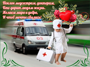 Со светлым праздником, Днем работников скорой медицинской помощи. Дорогие медики, желаю вам, чтобы ваши труды всегда приносили плоды. Дабы вы каждый раз успевали вовремя на вызов, и фактор времени никогда вас не подводил. Чтобы ваши зарплаты были высокими, а помыслы праведными. Дабы вам удалось спасти тысячи жизней. Чтобы трудности в работе вас никогда не пугали и не останавливали. Помните, что в ваших руках человеческие жизни. Удачи во всех начинаниях и головокружительных успехов.
