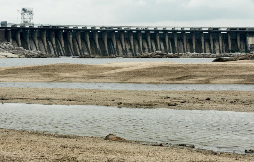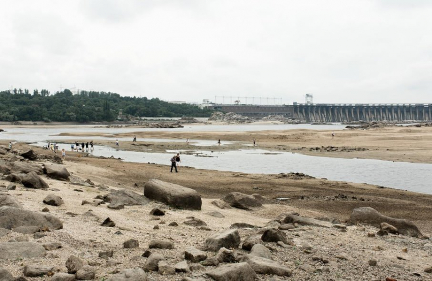 Появились первые фото оголившегося берега Днепра в районе ДнепроГЭСа в Запорожье