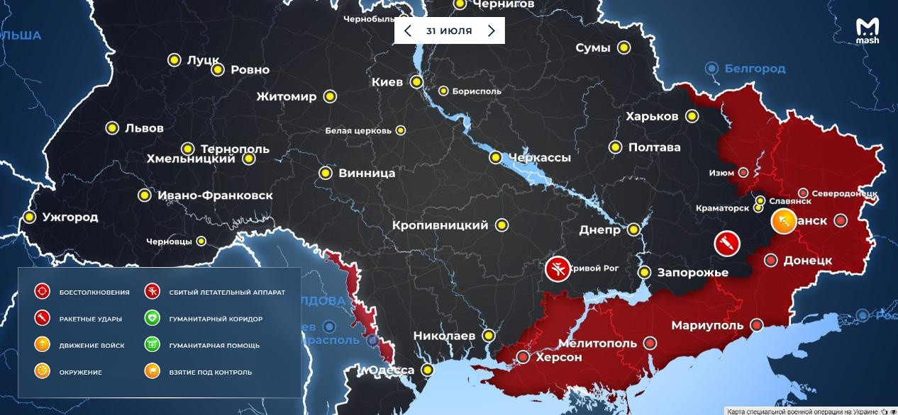 Актуальная карта боевых действий на Украине на сегодня, 31 июля 2022 года: последние новости