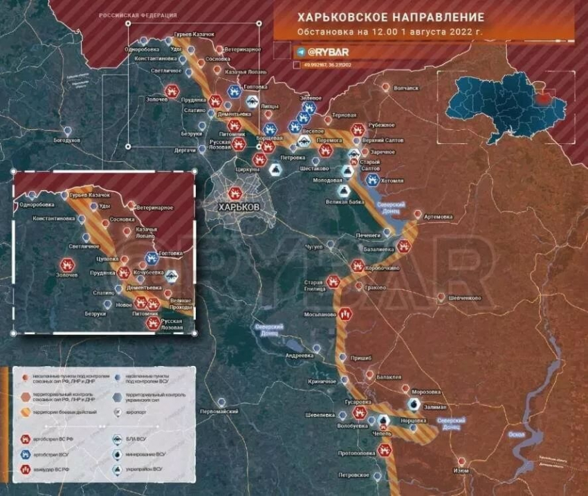 Украинские расчеты БЛА ведут разведку позиций российских войск из окрестностей Малых Проходов, Петровки и Старого Салтова. Украинская артиллерия нанесла удары по Хотомле, Веселому, Борщевому, Нескучному, Зелёному и Гоптовке.
