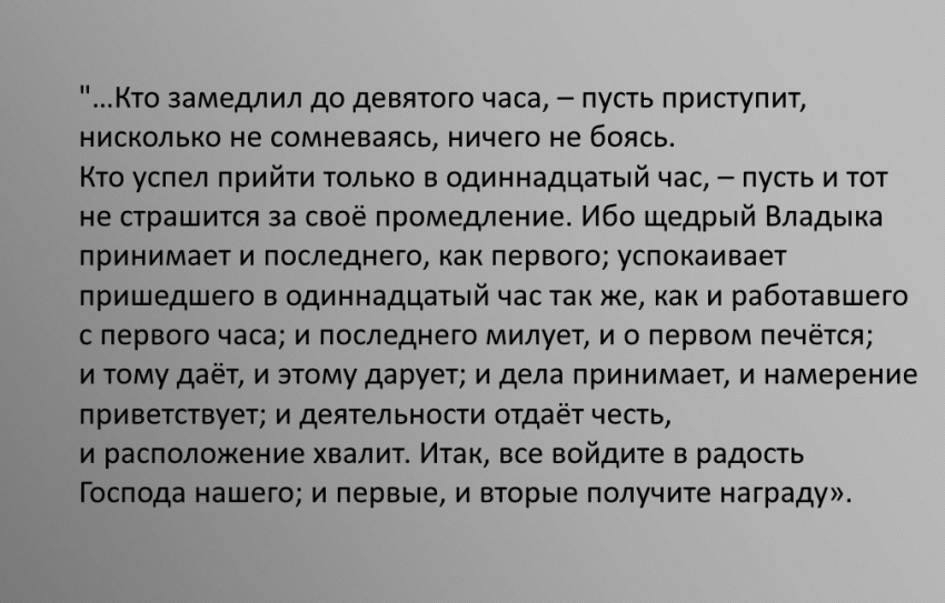 Это означает, что сроки поста — это не цель, а средство. Если человек решился на соблюдение ограничений позже или у него не получилось придерживаться всех правил, то для него пост может начаться в любой день. Главное, увидеть свои грехи, а не произвести внешний эффект.