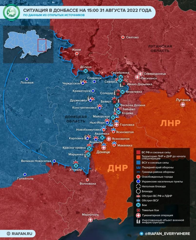 Новая карта боевых действий на Украине сегодня, 1 сентября 2022: военная спецоперация РФ на Украине