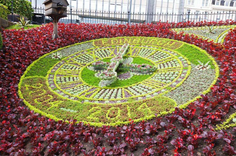 Производство часов идет рука об руку с дизайном и миром роскоши, но флористы тоже знают свое дело: Смотритель городского парка Эдинбурга Джон Макхэтти впервые решил совместить приятное с полезным в 1903 году, когда он установил огромный циферблат часов, украшенный разноцветными цветами. В первой версии была только одна стрелка, вторая была добавлена через год. Однако до 1973 года, пока не было установлено электричество, работникам приходилось перемещать их вручную. Циферблат имеет размер 3,6 метра в поперечнике, всегда цветет с июля по октябрь, а большая стрелка весит 36 килограммов под тяжестью зелени. Количество используемых растений выросло с первоначальных 13 000 до нынешних 35 000.