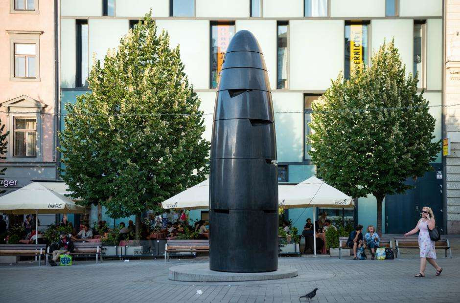 Спорные на вид часы стали одним из современных символов столицы Моравии. Работа в форме снаряда была создана в 2010 году в честь 365-й годовщины неудачной осады Брно шведами. Астрономическая цена в 12 миллионов крон и фаллическая форма астрономических часов вызвали волну недовольства. Кроме того, часовой механизм вскоре стал печально известен своей сложностью, что делало практически невозможным определение времени. Тем не менее, каждый день в 11 часов из него выпадает стеклянный шарик в качестве сувенира.