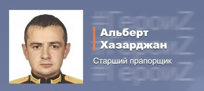 В ходе боя танк был подбит. Наводчик получил ранение. Вытащив из подбитого танка раненого товарища, старший прапорщик Хазарджан занял его место и продолжил бой. Прикрывая действия своих войск, Альберт вместе с экипажем уничтожил 2 танка, 1 БМП и более 10 националистов. В результате ожесточенного боя, благодаря грамотным, самоотверженным и профессиональным действиям старшего прапорщика Альберта Хазарджана российские мотострелки, отразив атаку противника, перешли в контрнаступление и разгромили националистические вооруженные формирование вблизи освобожденного населенного пункта.