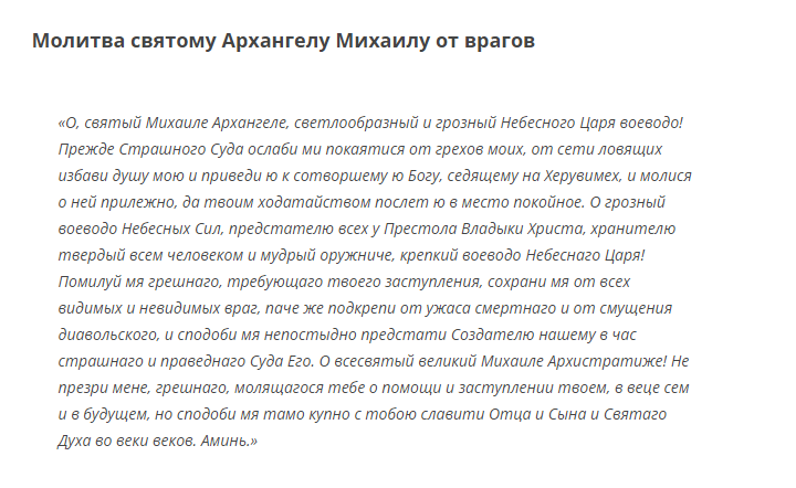 Молиться архангелу Михаилу можно о защите от несправедливости, козней врагов и даже опасности для жизни. Искреннее обращение обязательно будет услышано.