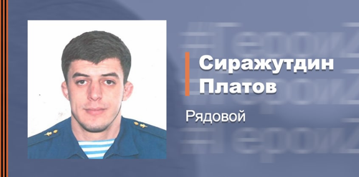 Мужество и высочайшее мастерство владения гранатометом рядового Сиражутдина Платова, прикрывшего отход российской колонны и уничтожившего огневую точку неонацистов, позволили сохранить жизни российким военнослужащим в ходе выполнения спецоперации по освобождению Донбасса и денацификации Украины. Об этом 18 сентября сообщила пресс-служба Минобороны РФ.