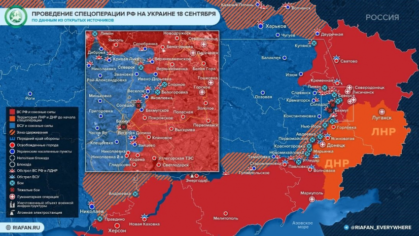 Карта боевых действий на Украине по данным на 18 сентября: новости о военной спецоперации