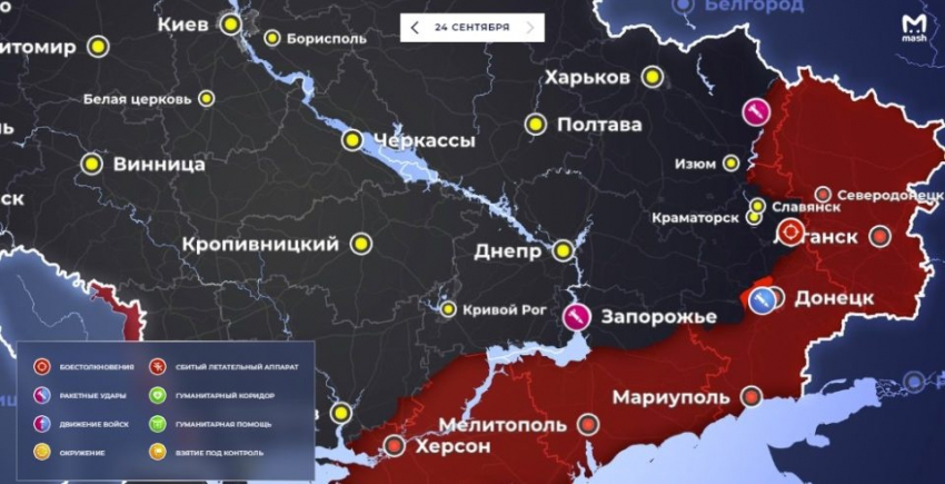 Карта боевых действий на Украине на 24 сентября 2022 года: актуальные данные