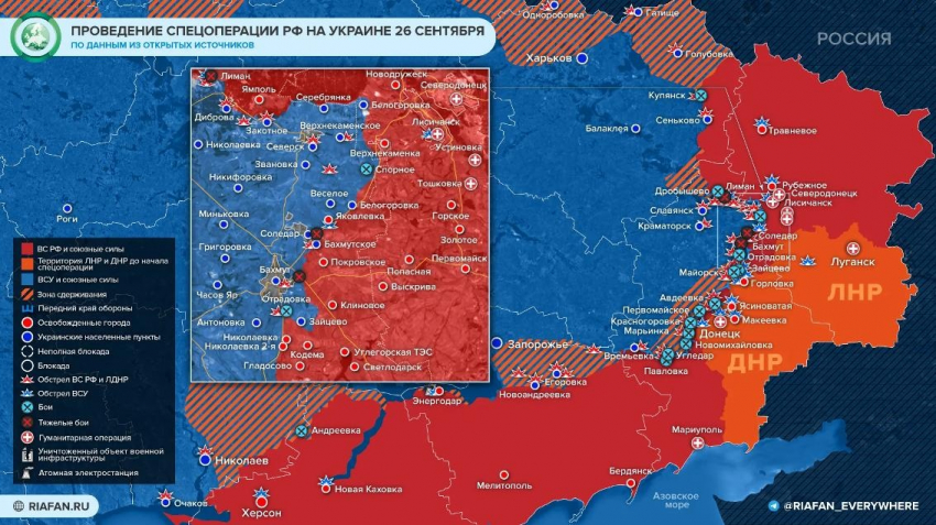 Карта боевых действий на Украине по данным на сегодняшний день: актуальные сведения от 26.09.2022