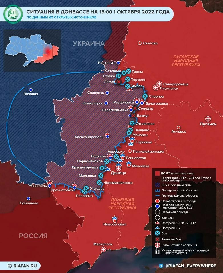 Карта боевых действий на Украине 2 октября: свежая информация