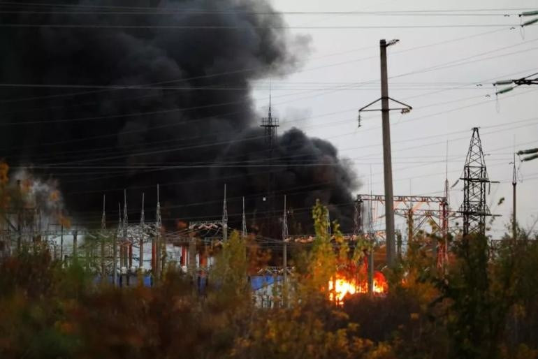 В настоящее время идут перебои с подачей электроэнергии во многие районы Киевской столицы. Город обуяли клубы дыма. Скорее всего, российскими военными выведена из строя ТЭЦ-6.