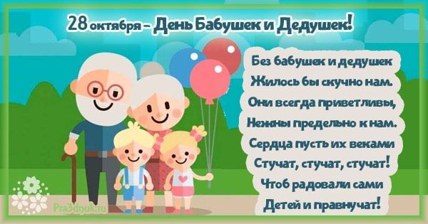 Что интересно, этот праздник отмечают не только в России. День бабушки и дедушки также празднуют жители Великобритании, Польши, Италии и Америки. Цель этого дня — чествование бабушек и дедушек, поэтому внуки поздравляют их с праздником, дарят яркие открытки и трогательные поздравления в стихах и прозе.