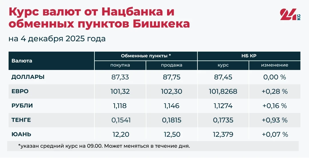 Сом заметно дешевеет: рубль и юань бьют годовые рекорды. Курс валют на 4 декабря
