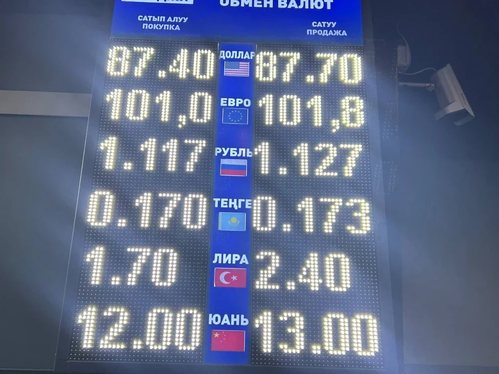 Стоимость доллара увеличилась: он покупается по 87,4 сома, а продается по 87,7 сома.