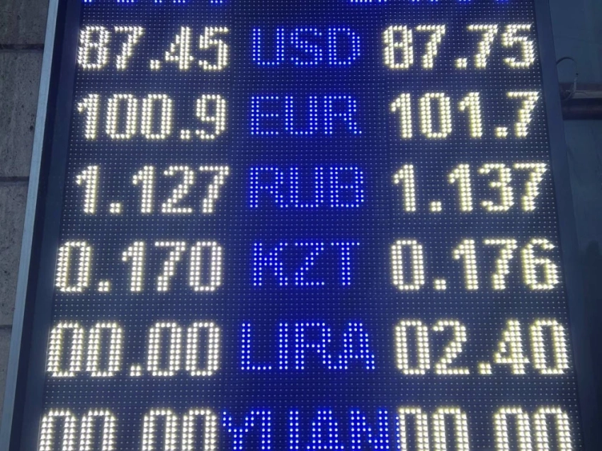 Курс доллара возрос: его покупают по 87,45 сома, а продают по 87,75.
