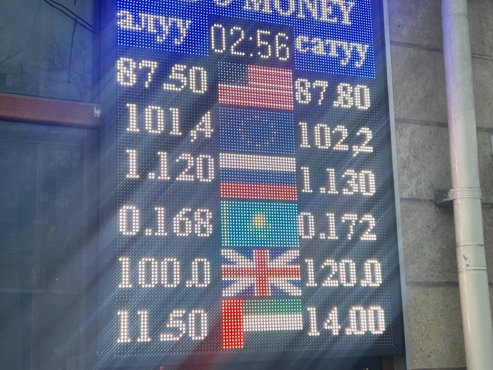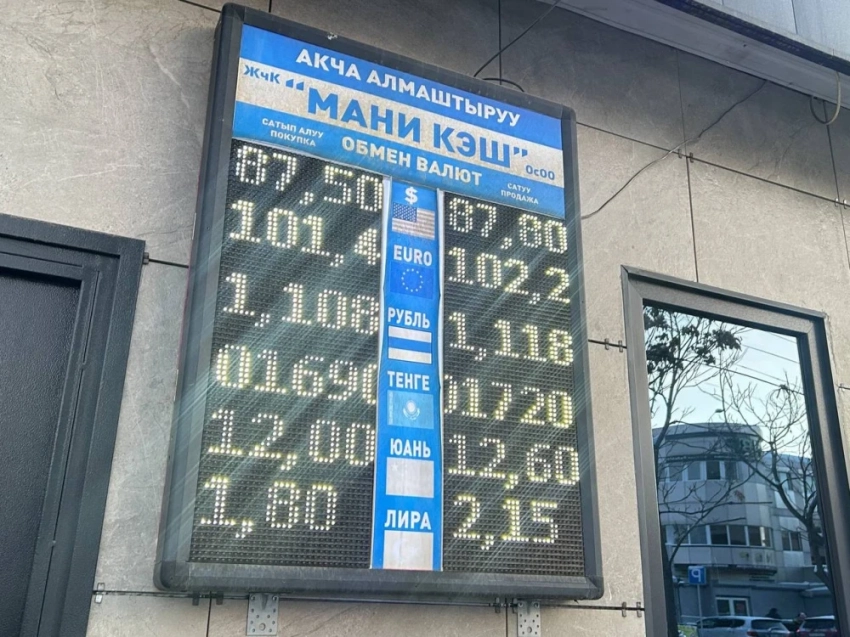 Что касается рубля, то его стоимость снизилась: цена покупки составляет 1,10-1,12 сома, а продажи - 1,12-1,13.