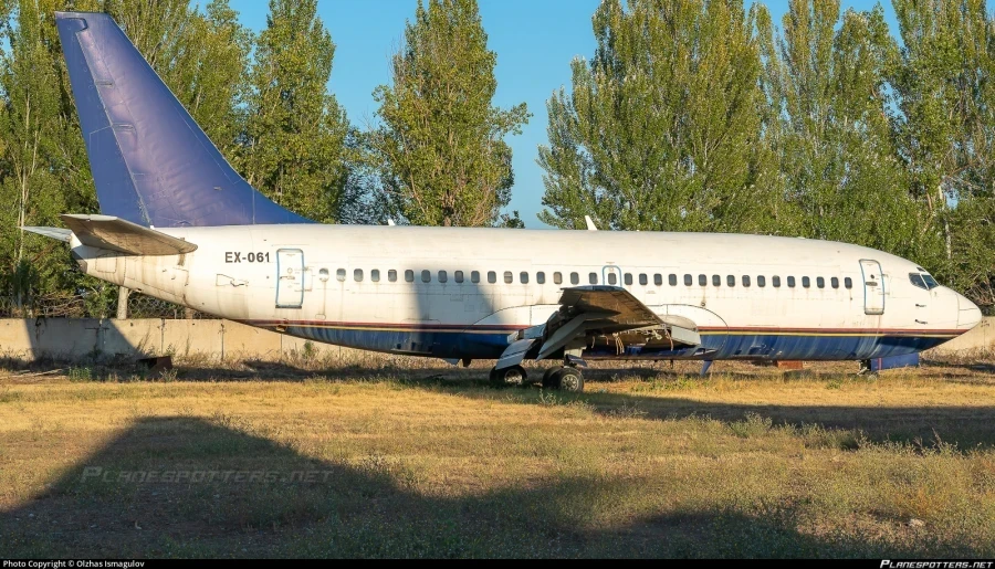 Лот № 3 — Boeing 737-200 EX-061 (3 миллиона 511 тысяч 80 сомов). Узкофюзеляжный пассажирский самолет для коротких и средних рейсов. Состояние: снят с эксплуатации, морально устарел и не пригоден для дальнейшего использования. Указано частичное отсутствие оборудования.