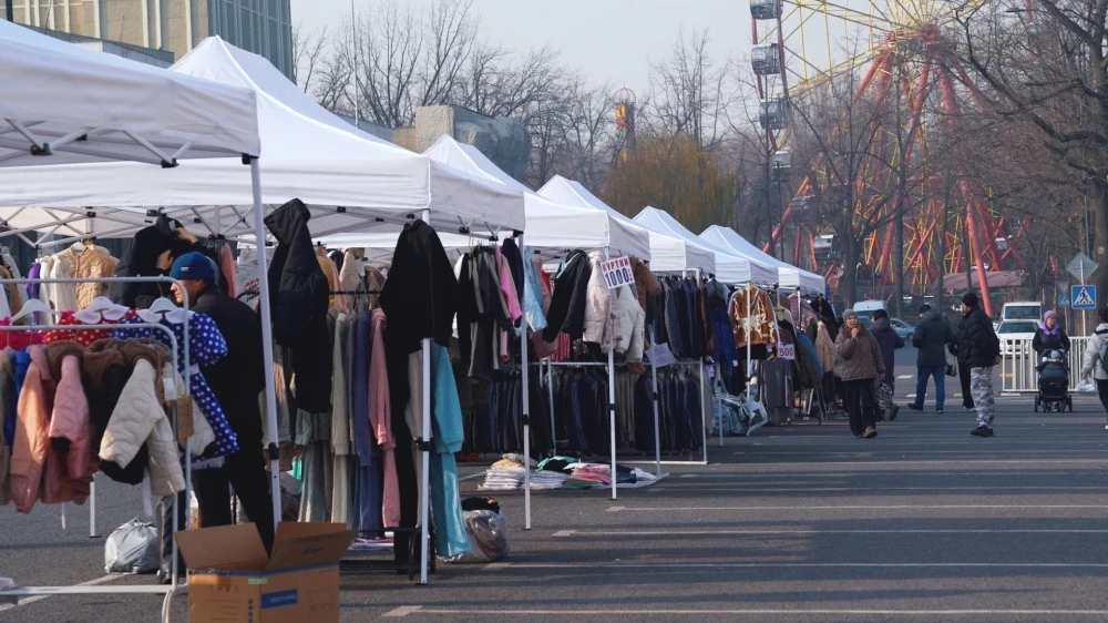Первое, что бросается в глаза на ярмарке, - это цены на товары. Алина Кубатбек кызы, предпринимательница, объясняет, что оптовая цена детских вещей с начесом, которая в прошлом году достигала 900–950 сомов, сейчас составляет всего 700 сомов за единицу. Например, комплект, который продавался за 950 сомов, сейчас можно купить за 600.По её словам, это не связано с уценкой некачественной продукции, а является вынужденной мерой. Вся одежда изготовлена из качественной ткани, но остаётся непроданной на складах.