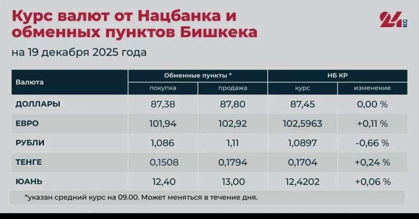- Официальный курс НБ КР: 87,45 сома (без изменений).