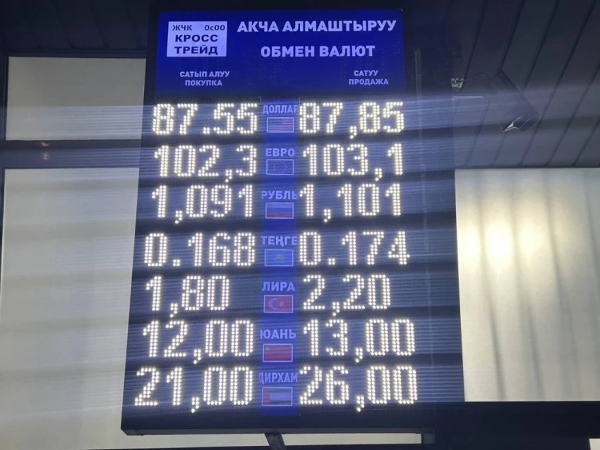 Курс доллара остался неизменным: 87,55 сома при покупке и 87,85 - при продаже.