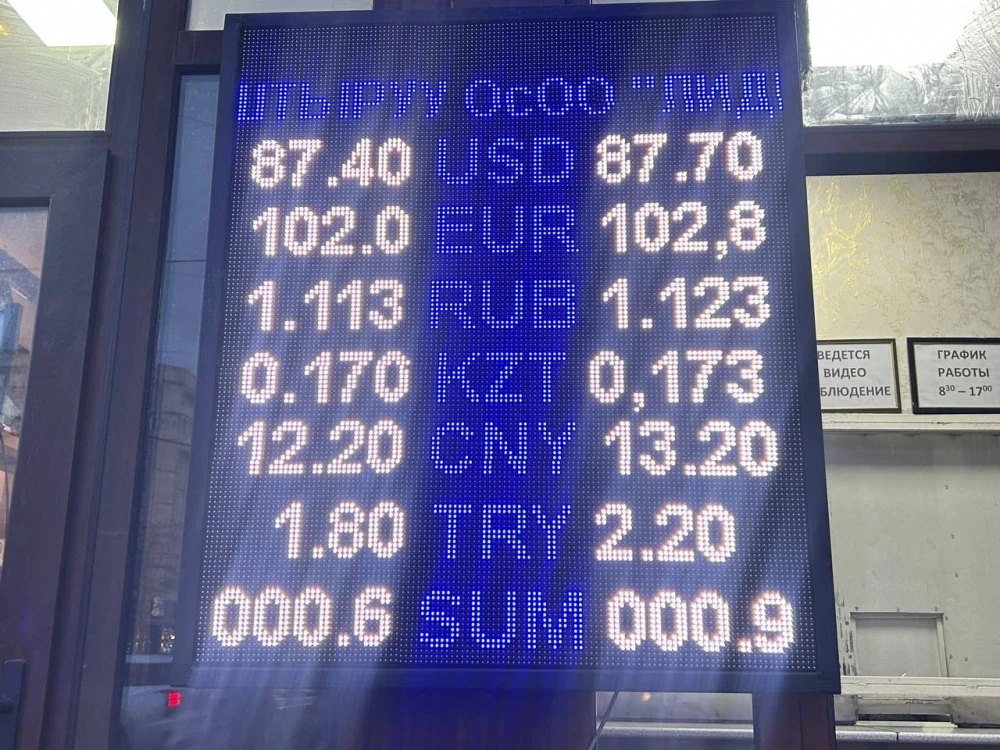 Что касается рубля, его стоимость также снизилась: при покупке он стоит 1,1-1,11 сома, а при продаже — 1,11-1,12 сома.