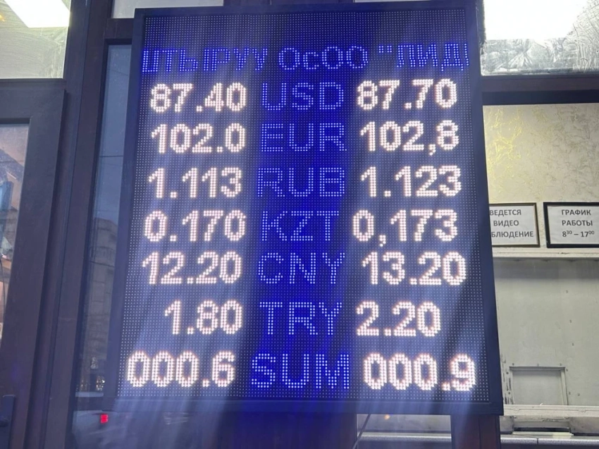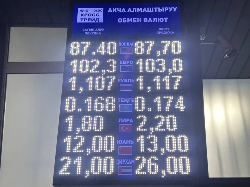 Доллар подешевел: его покупка осуществляется по 87,4 сома, а продажа — по 87,7 сома.