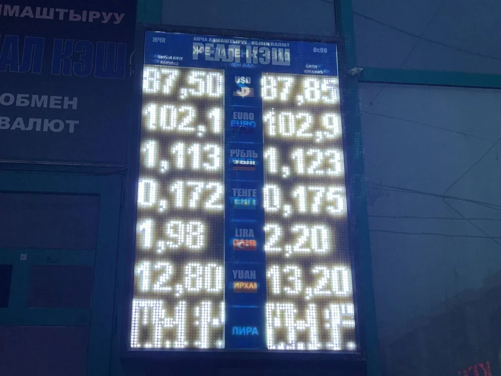 Курс доллара остается неизменным: покупка составляет 87,5 сома, а продажа — 87,85 сома.