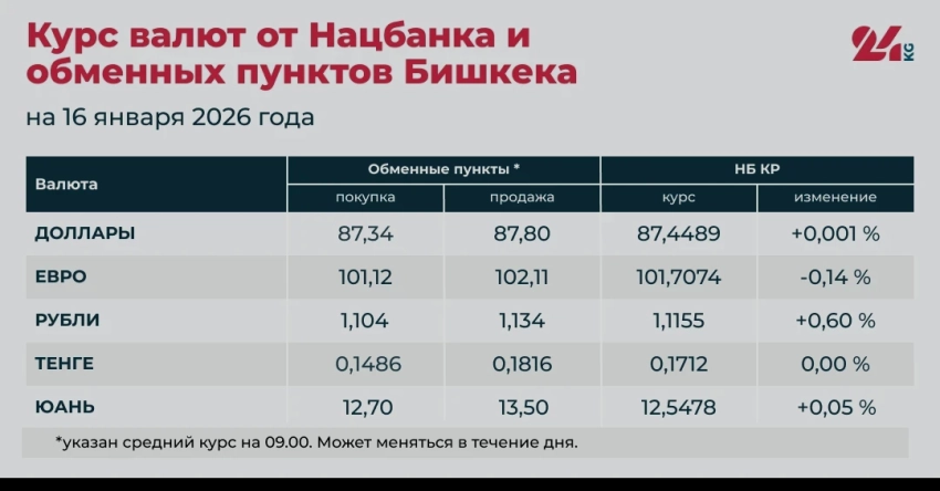 - Официальный курс НБ КР: 87,4489 сома (увеличение на 0,001 процента).
