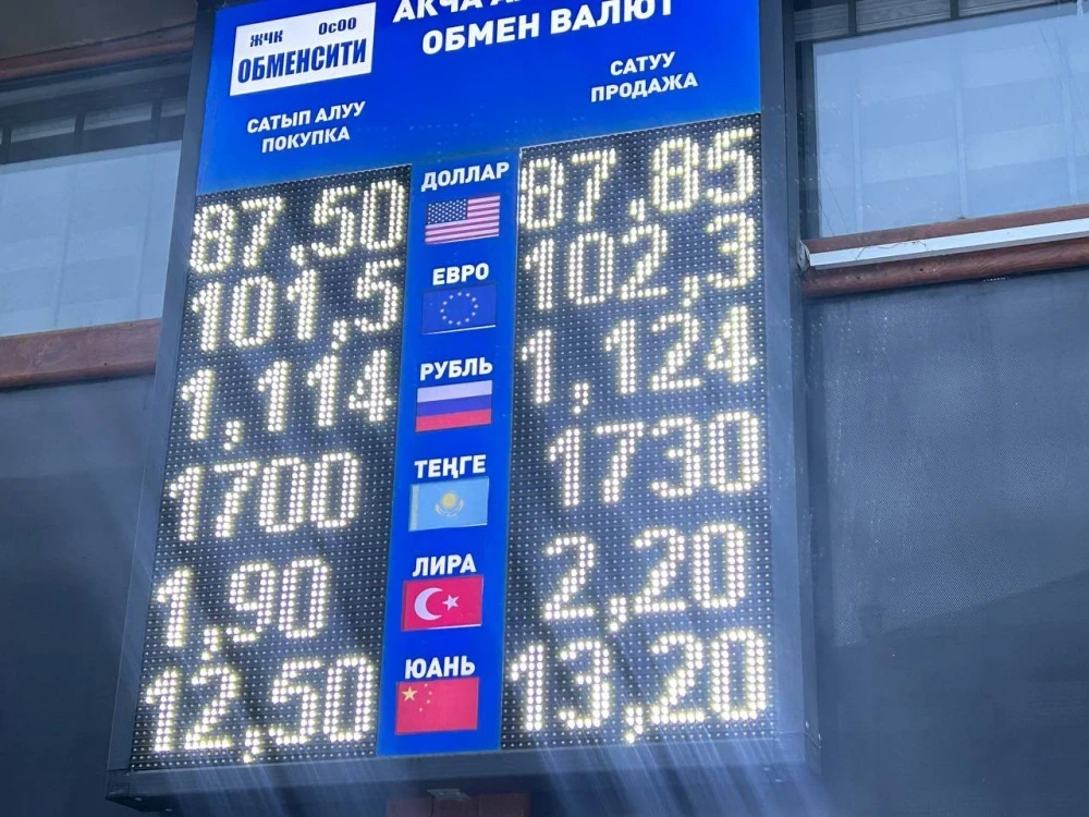 Курс доллара остался прежним: его покупают по 87,5 сома, а продают по 87,85.