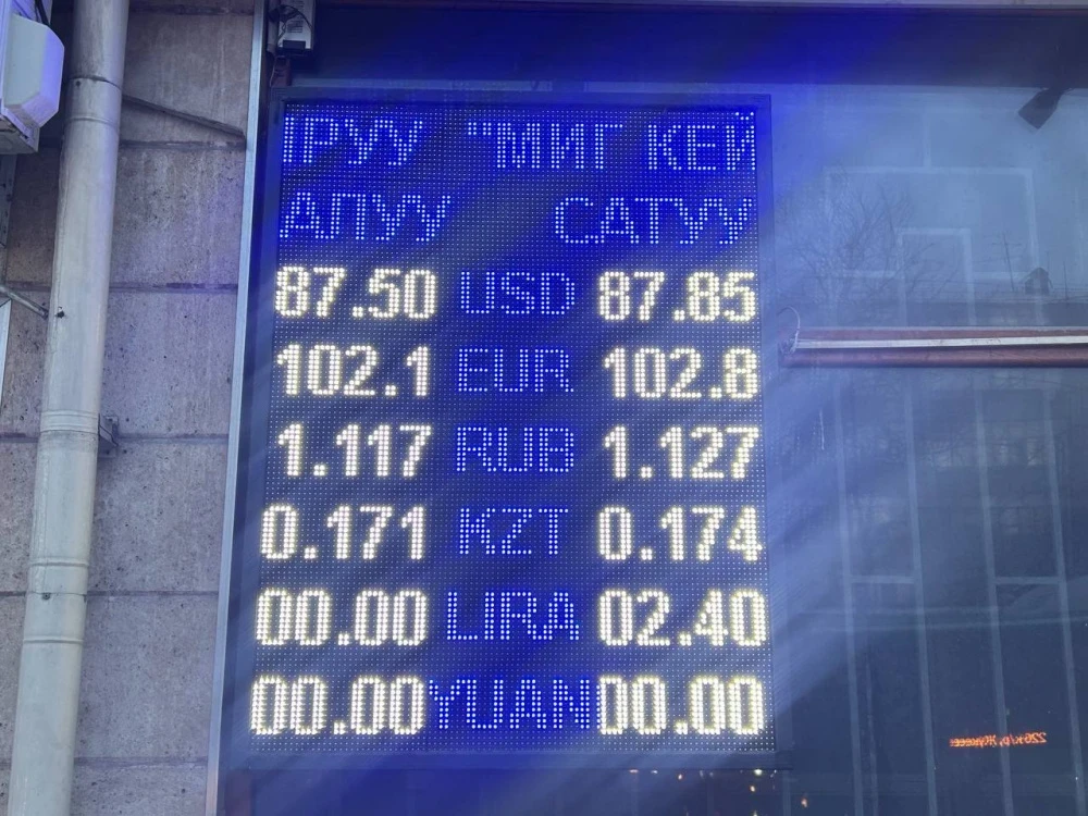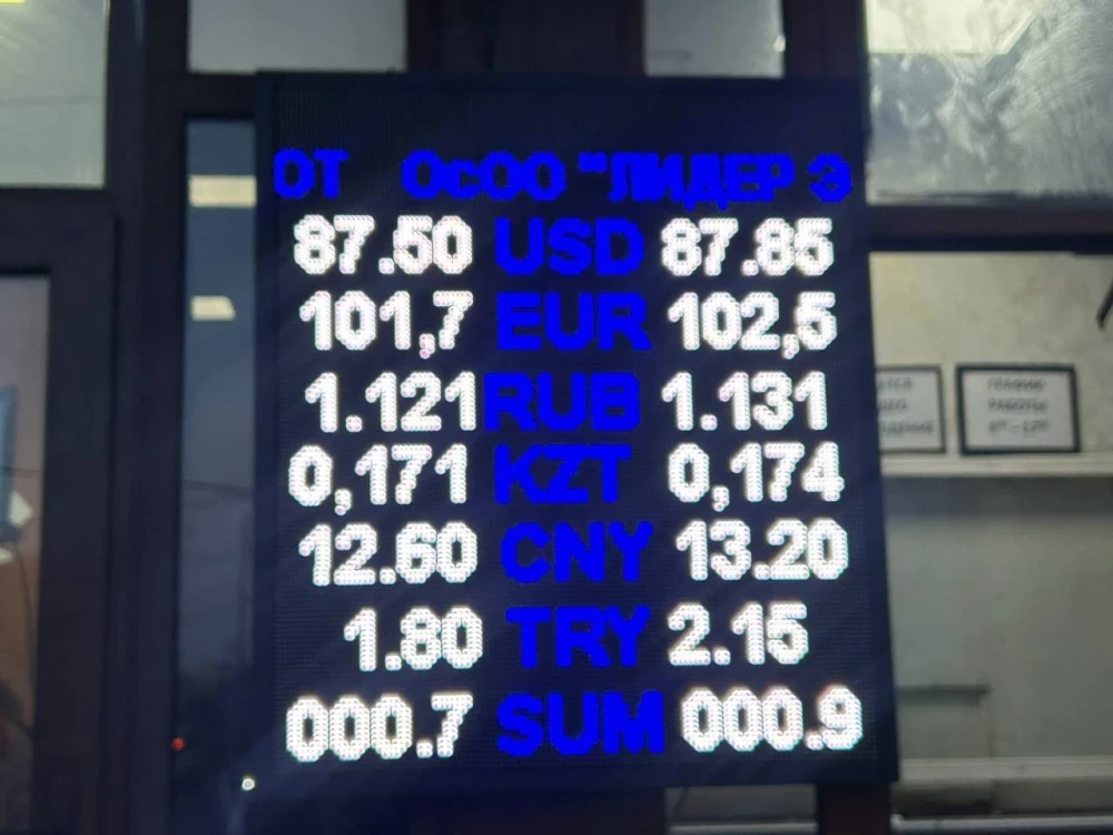 Курс доллара остается на уровне: покупка - 87,5 сома, продажа - 87,85.