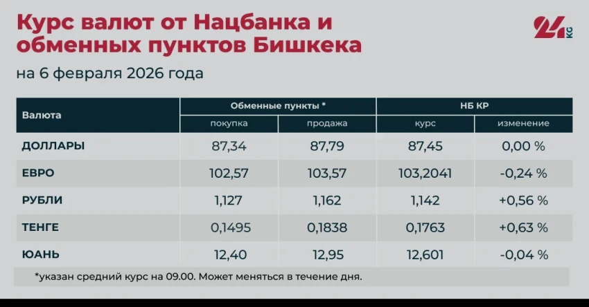 - Официальный курс НБ КР: 12,601 сома (снижение на 0,04 процента).