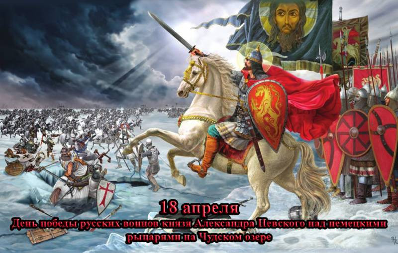 18 апреля в нашей стране отмечают День воинской славы России, посвященный победе русских воинов князя Александра Невского над немецкими рыцарями на Чудском озере — знаменитом Ледовом побоище, 1242 год.