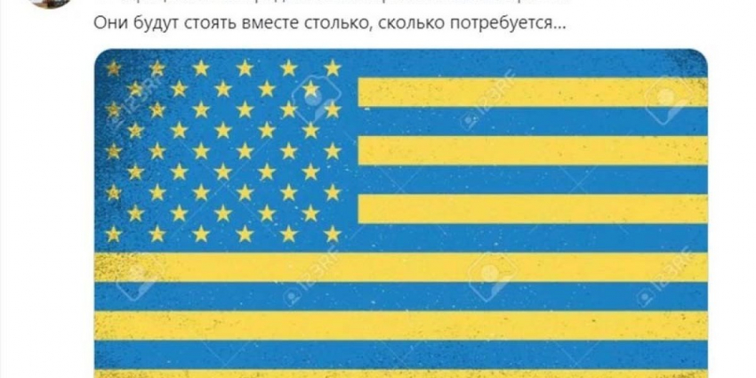 Украинский постпред при ООН Сергей Кислица опубликовал в Twitter «новый флаг Украины». Он представляет собой аналог американского флага, только в желто-синих цветах. На это иронично отреагировала представитель МИД РФ Мария Захарова.