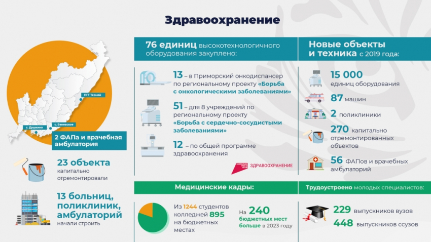 В медицинские колледжи Приморья в 2022 году поступили 1 244 человека, в том числе на бюджетной основе — 895. В 2023 году количество таких мест увеличено еще на 240.