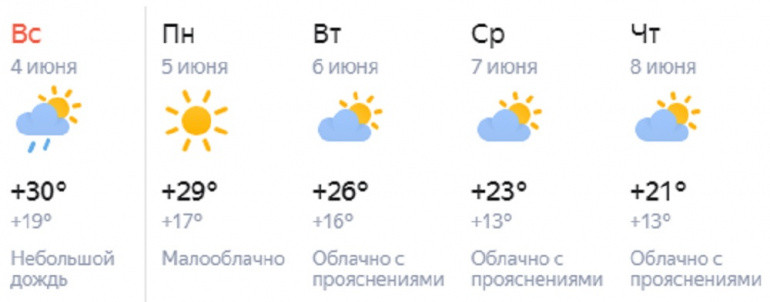 Облачность с прояснениями, кратковременные дожди и грозы ожидаются на Южном Урале минимум до вечера воскресенья. По ночам будет от +10 до +19. Днём же в горах и на крайнем западе области, где расположены Аша, Сим и так далее, ожидается +26…+28, а на остальной территории — по-прежнему +31…+36 градусов. Порывы ветра южной четверти в ближайшие двое суток будут достигать 18 метров в секунду, затем он заметно стихнет.