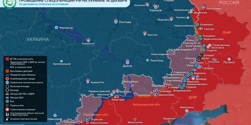 - Свежая карта боевых действий на Донбассе и Украине 17 декабря 2022, новые направления спецоперации на Украине, свежие данные с линии фронта
