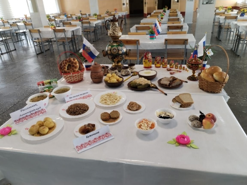 Так, в воинской части города Лиски (Воронежская область) сотрудники кухни встретили питающихся в национальных костюмах. В честь праздника там провели День русской кухни. На стенах – шары цветов российского флага, на столе – самовар.