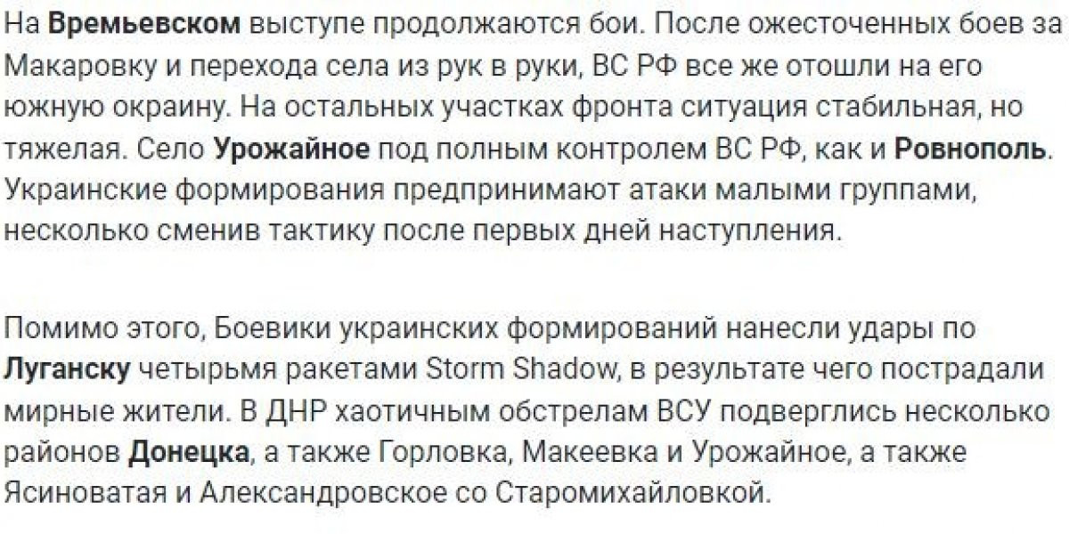- Фронтовая сводка Семена Пегова за 14.06.23 г. — Варгонзо (WarGonzo последние новости):