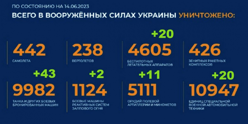 - Актуальный брифинг Министерства обороны РФ о ходе проведения специальной военной операции на территории Украины по состоянию на 14 июня 2023 года. Сводка боевых действий на Украине.
